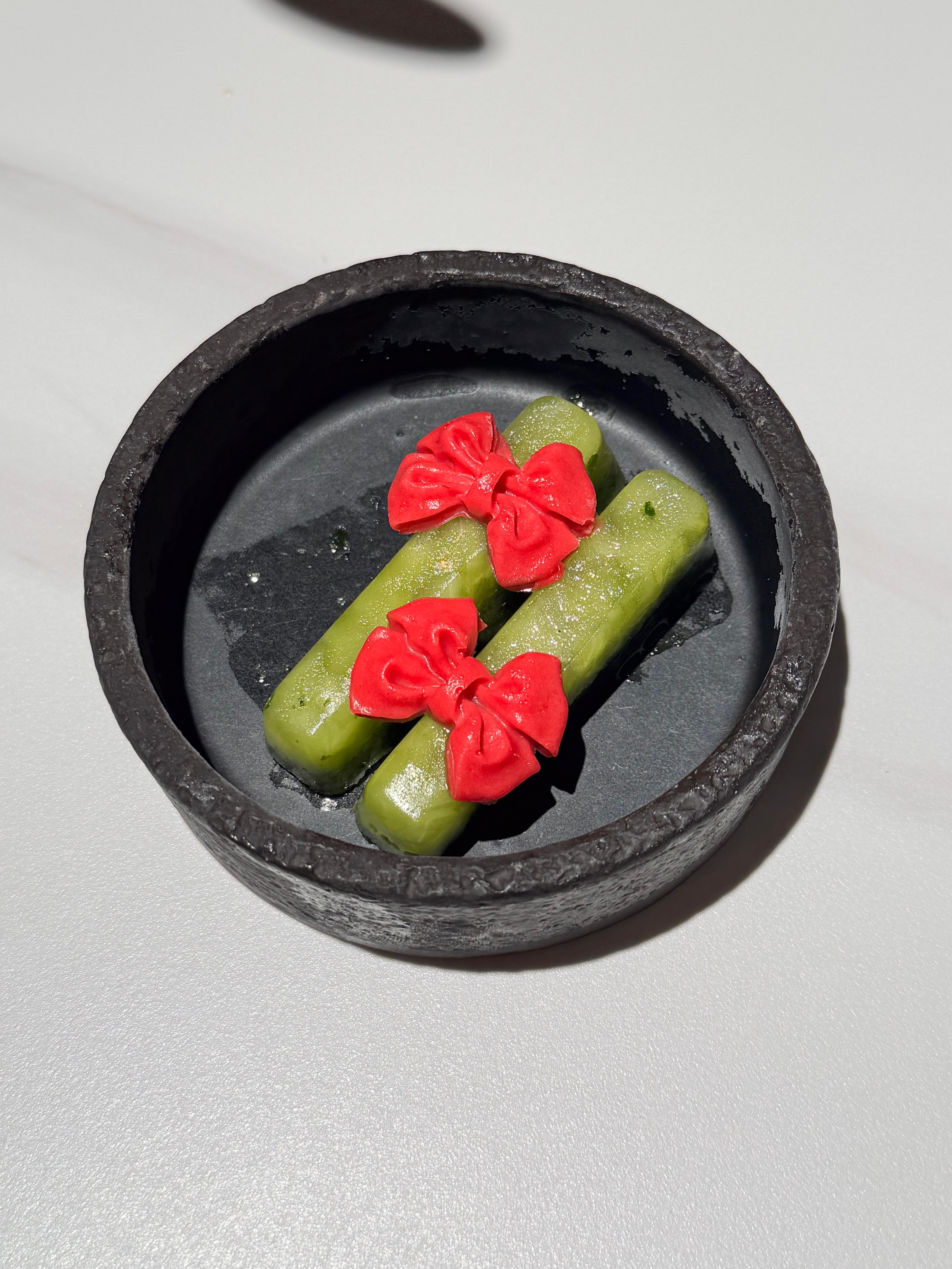 바질과 레몬으로 만든 소르베, 베리류와 화이트 초콜릿으로 만든 리본이 크리스마스를 연상케 했습니다.