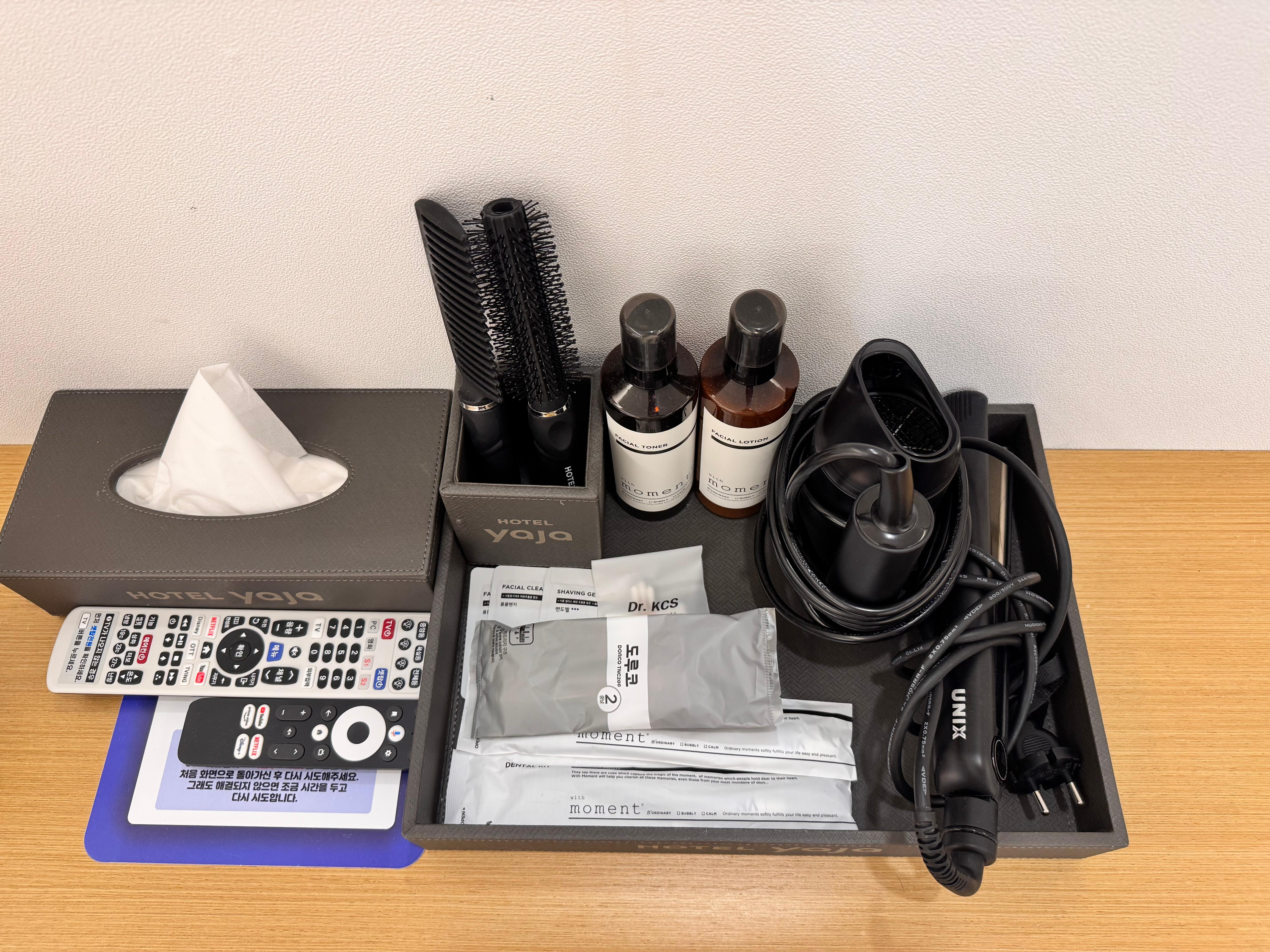 - 어메니티 충실 → 세면도구 외에도 헤어드라이기, 고데기, 빗 제공