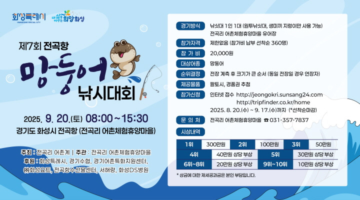 올가을, 2025년 9월 20일(토) 화성시 전곡항에서 특별한 해양레저 축제가 펼쳐집니다! 바로 ‘제7회 전곡항 망둥어 낚시대회’인데요. 화성시를 대표하는 가족형 해양 체험 행사로 매년 많은 낚시 마니아들과 시민들의 뜨거운 관심을 받아온 명실상부한 인기 대회입니다.