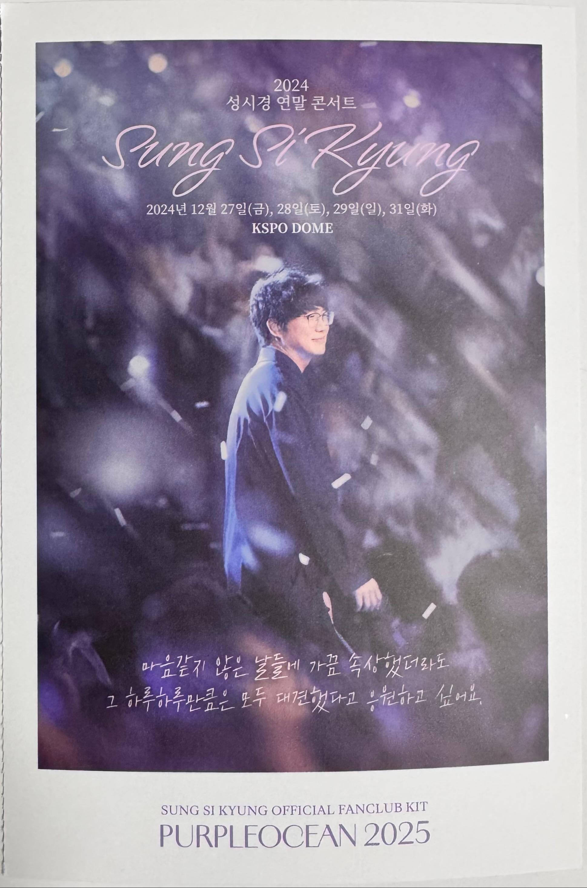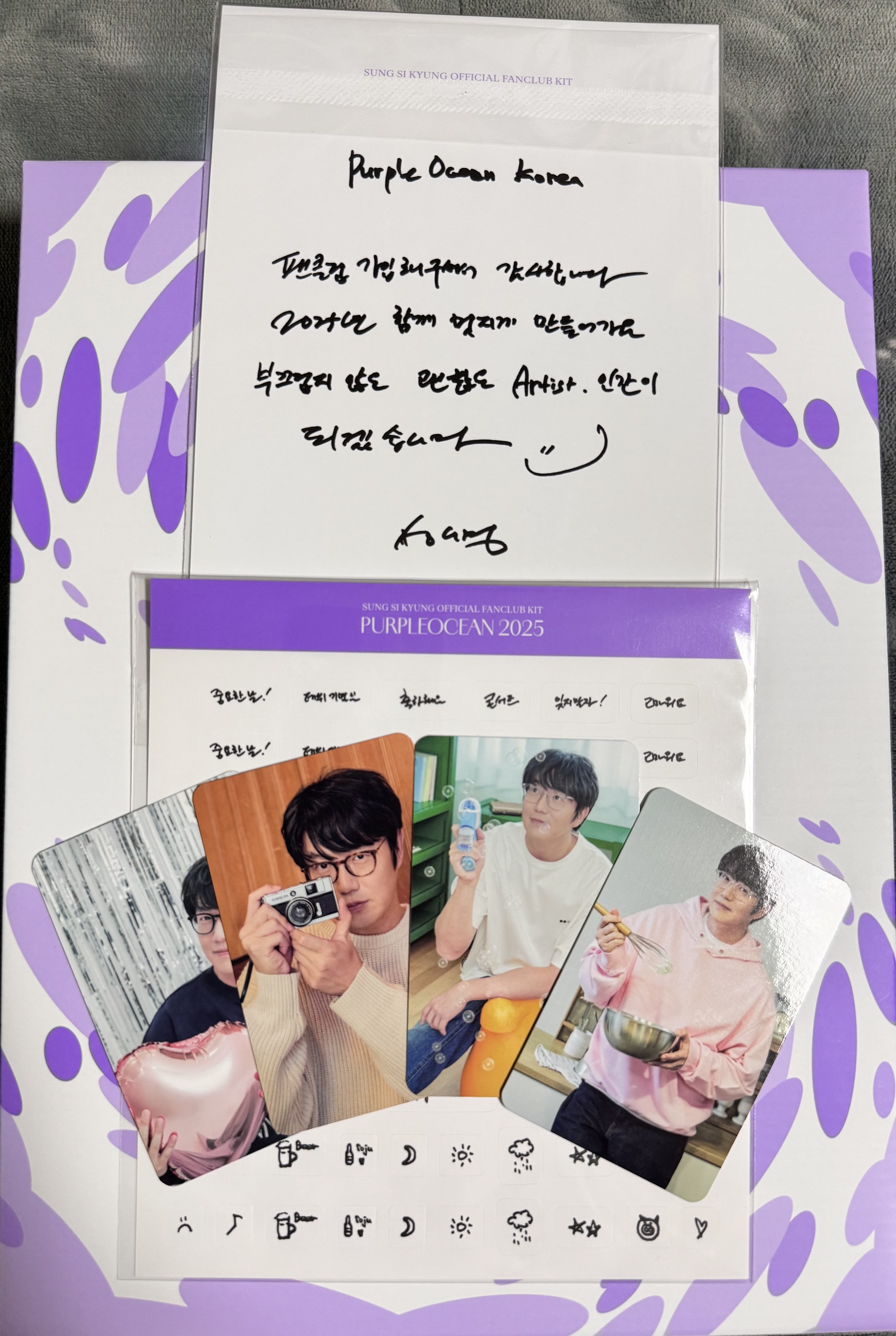 성시경의 공식 팬클럽 **퍼플오션(PURPLEOCEAN)**의 2025 팬클럽 키트가 드디어 공개되었습니다! 올해 키트는 더욱 풍성한 구성과 감성적인 디자인으로, 팬들에게 특별한 선물이 될 만한 소장 가치 높은 아이템들로 가득합니다.